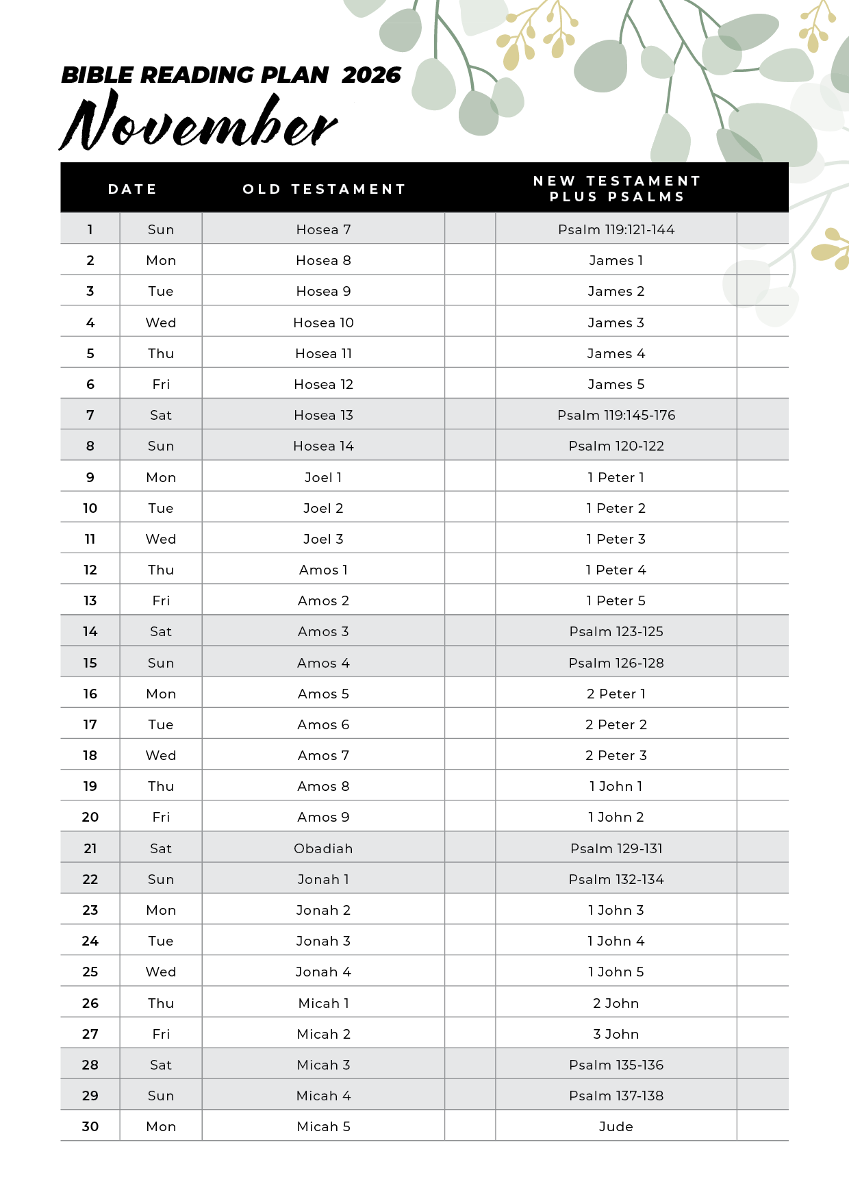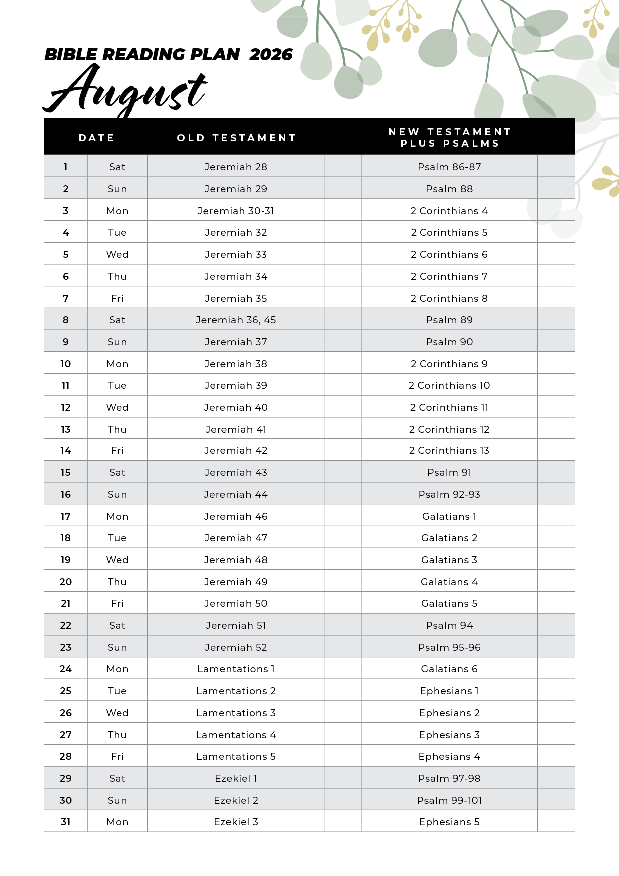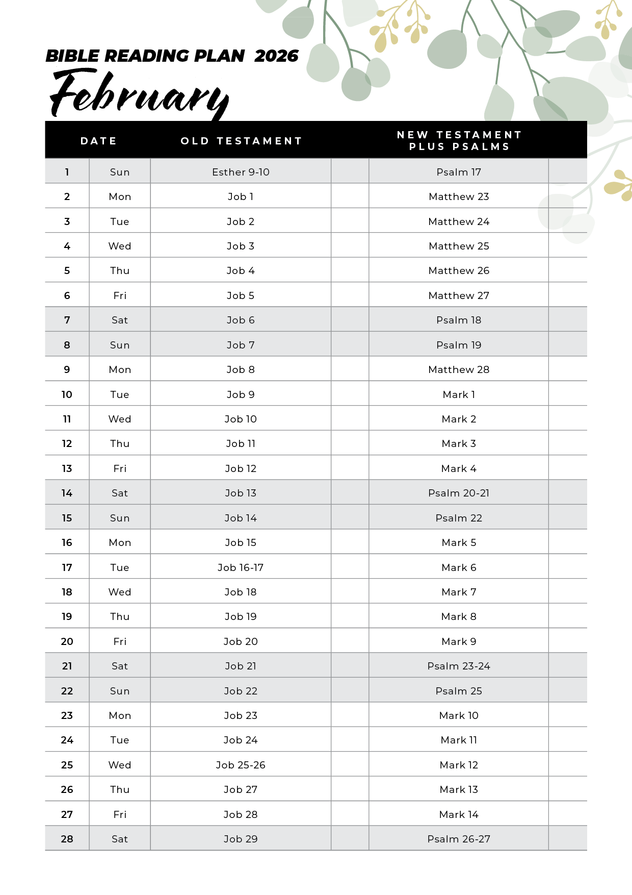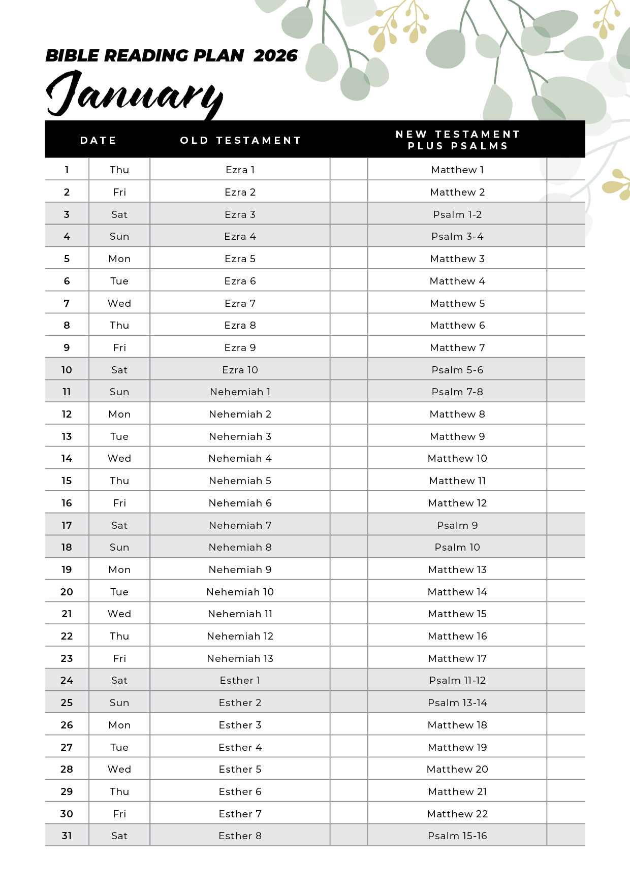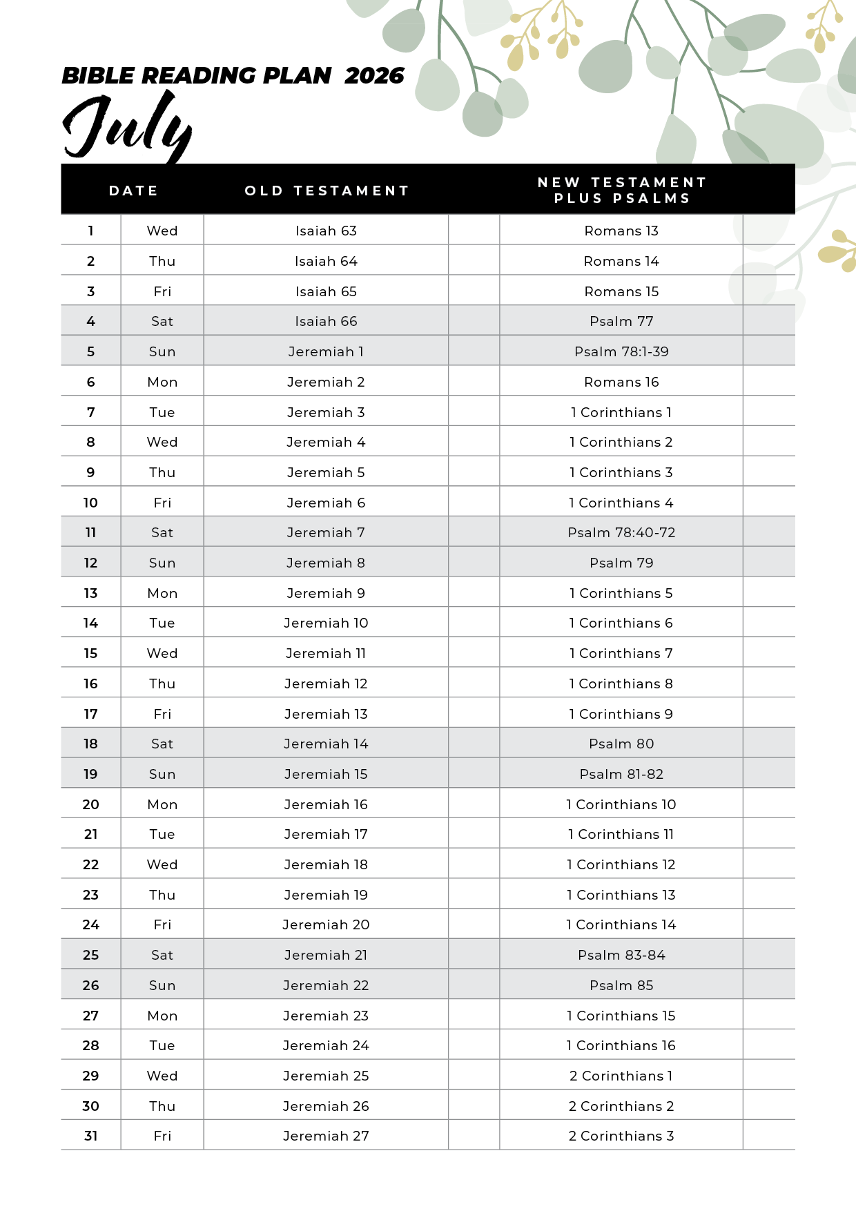 Download the 2026 Bible Reading Plan, or click on each month below to view its reading plan: